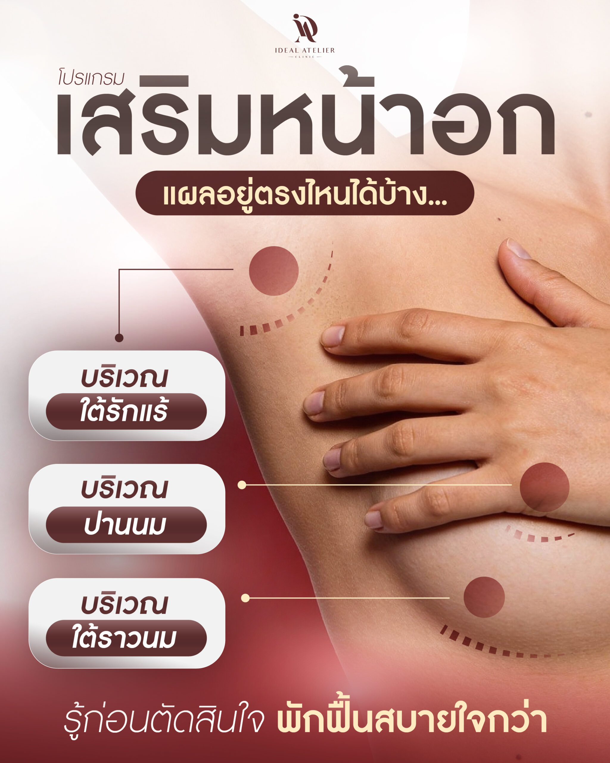 บทความด้าน ศัลยกรรม ล้างแผลจมูกยังไงให้แผลฟื้นตัวดี และทรงจมูกเข้าที่ 10/04/2026 Read More » ตากับคิ้วใกล้กัน แก้ได้ไหม ? เข้าใจสาเหตุและแนวทางปรับให้หน้าดูละมุน 10/04/2026 Read More » ดูแลแผลตาหลังผ่าตัดยังไงให้ฟื้นตัวดี และชั้นตาเข้าที่ 10/04/2026 Read More » ตะไบฮัมพ์จมูกจำเป็นไหม ? เข้าใจให้ชัดก่อนตัดสินใจ 10/04/2026 Read More » เสริมหน้าอกมีกี่เทคนิค แผลอยู่ตรงไหน และพักฟื้นกี่วัน 10/04/2026 Read More » เสริมจมูกแบบเปิด vs แบบปิด ต่างกันยังไง และแบบไหนเหมาะกับคุณ 10/04/2026 Read More » บทความงาน สกิน ล้างแผลจมูกยังไงให้แผลฟื้นตัวดี และทรงจมูกเข้าที่ 10/04/2026 Read More » ตากับคิ้วใกล้กัน แก้ได้ไหม ? เข้าใจสาเหตุและแนวทางปรับให้หน้าดูละมุน 10/04/2026 Read More » ดูแลแผลตาหลังผ่าตัดยังไงให้ฟื้นตัวดี และชั้นตาเข้าที่ 10/04/2026 Read More » ตะไบฮัมพ์จมูกจำเป็นไหม ? เข้าใจให้ชัดก่อนตัดสินใจ 10/04/2026 Read More » เสริมหน้าอกมีกี่เทคนิค แผลอยู่ตรงไหน และพักฟื้นกี่วัน 10/04/2026 Read More » เสริมจมูกแบบเปิด vs แบบปิด ต่างกันยังไง และแบบไหนเหมาะกับคุณ 10/04/2026 Read More »